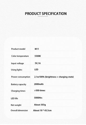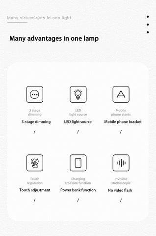 1. Multi-functional storage 2. Ring lamp head design, soft light is not dazzling 3.Vientiane hose design, can adjust the light direction at will 4 can be charged when the power bank for the mobile phone 5.large capacity battery 2000ma